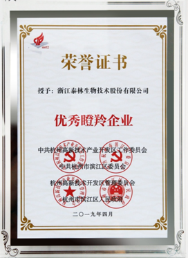 5月,濱江區(qū)召開(kāi)全區(qū)經(jīng)濟(jì)會(huì)議,區(qū)黨委、區(qū)管委會(huì)、區(qū)政府對(duì)全區(qū)“優(yōu)秀瞪羚企業(yè)”進(jìn)行表彰,泰林生物憑借突出的創(chuàng)新成就、優(yōu)異的企業(yè)成長(zhǎng)性成功入選百家“優(yōu)秀瞪羚企業(yè)”。