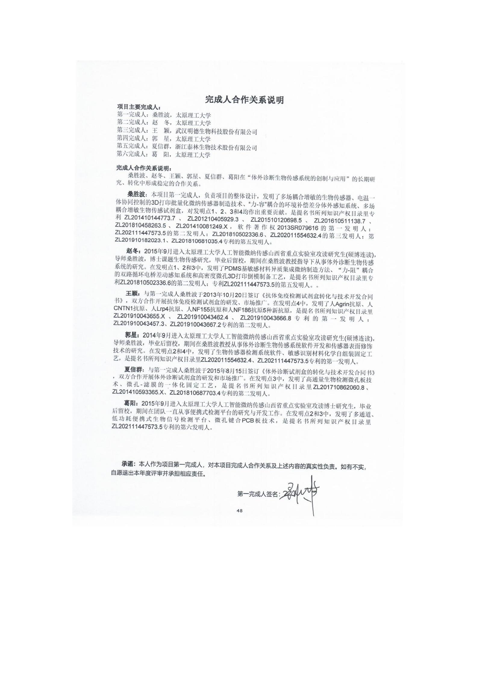 根據(jù)山西省科學(xué)技術(shù)廳關(guān)于山西省技術(shù)發(fā)明獎(jiǎng)提名工作的相關(guān)規(guī)定,浙江泰林生物技術(shù)股份有限公司、太原理工大學(xué)、武漢明德生物科技股份有限公司合作研發(fā)的科技成果“體外診斷生物傳感系統(tǒng)的創(chuàng)制與應(yīng)用”擬提名2024年度山西省技術(shù)發(fā)明獎(jiǎng)一等獎(jiǎng),現(xiàn)予以公示。公示期2024年12月09日至2024年12月15日。