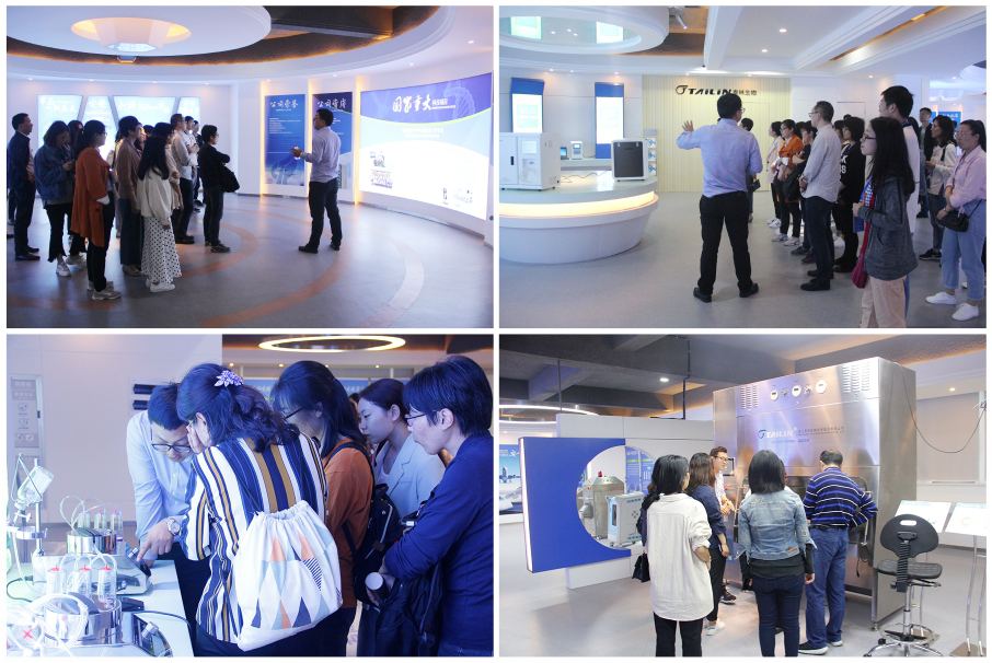 參觀一期新生產(chǎn)基地后,領(lǐng)導(dǎo)和專家們隨即參觀了泰林生物企業(yè)形象和產(chǎn)品展示廳,全面地了解了泰林生物的發(fā)展歷史、企業(yè)文化和核心產(chǎn)品,對無菌隔離器系統(tǒng)、過氧化氫滅菌器、無菌檢測系統(tǒng)、微生物檢測系統(tǒng)及TOC分析儀等產(chǎn)品產(chǎn)生了極大的興趣。參觀的同時也對產(chǎn)品的操作及性能特點展開了交流、討論,充分肯定了泰林生物的科研成果和技術(shù)水平。